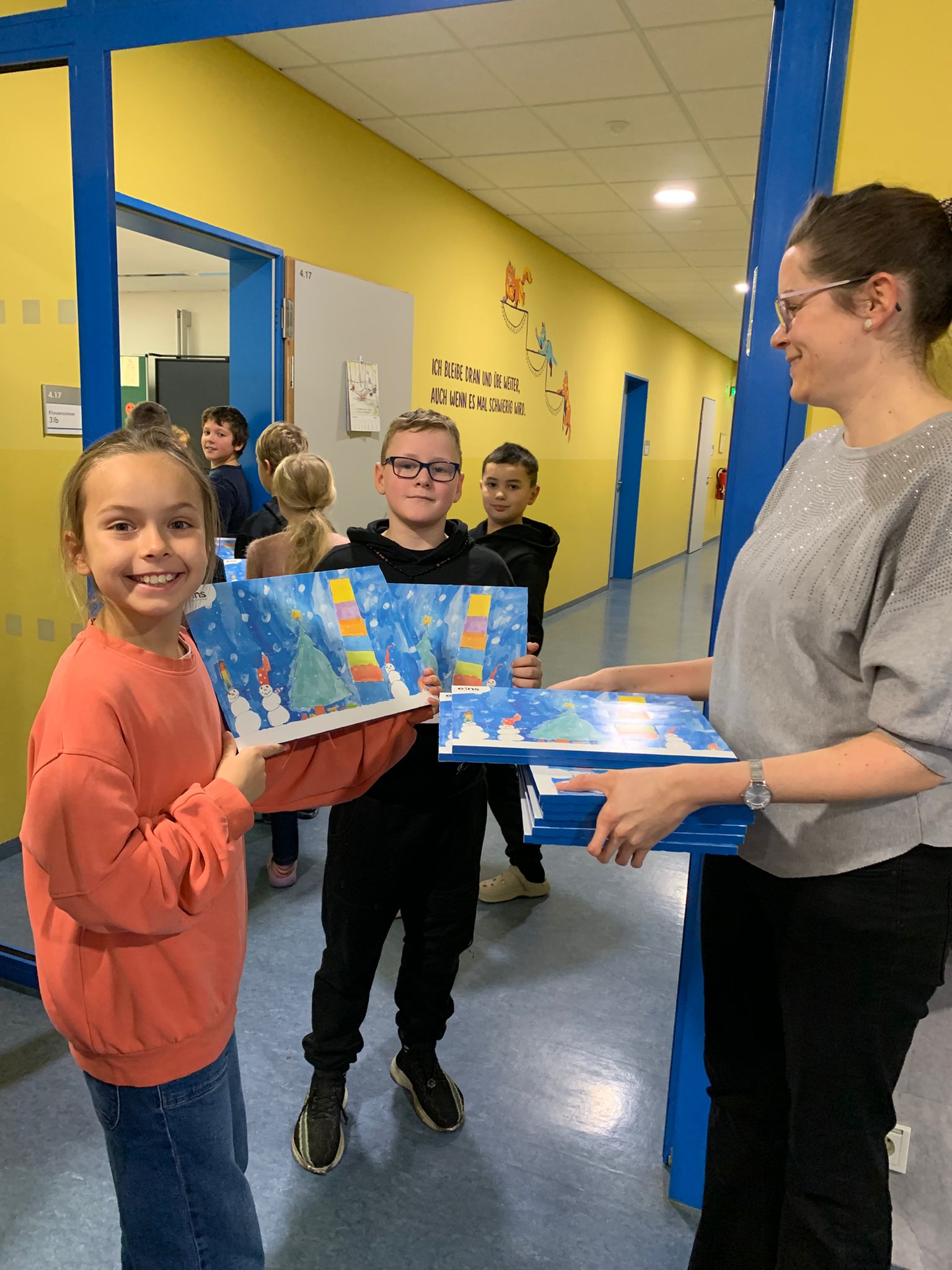 Frau Ludwig hat es geschafft, ihre Schülerinnen und Schüler im August in Weihnachtsstimmung zu versetzen, so dass jedes Kind tatsächlich ein Weihnachtsbild entstehen ließ. Nachdem die Weihnachts-Bilder-Post auf den Weg gebracht wurde, dauerte es gar nicht lange, bis wir die Nachricht bekamen, dass sich alle Kinder unserer Einrichtung über einen Kalender freuen können. Das Siegermotiv kommt zwar nicht von uns, aber auch unsere Vorschläge waren ganz toll!